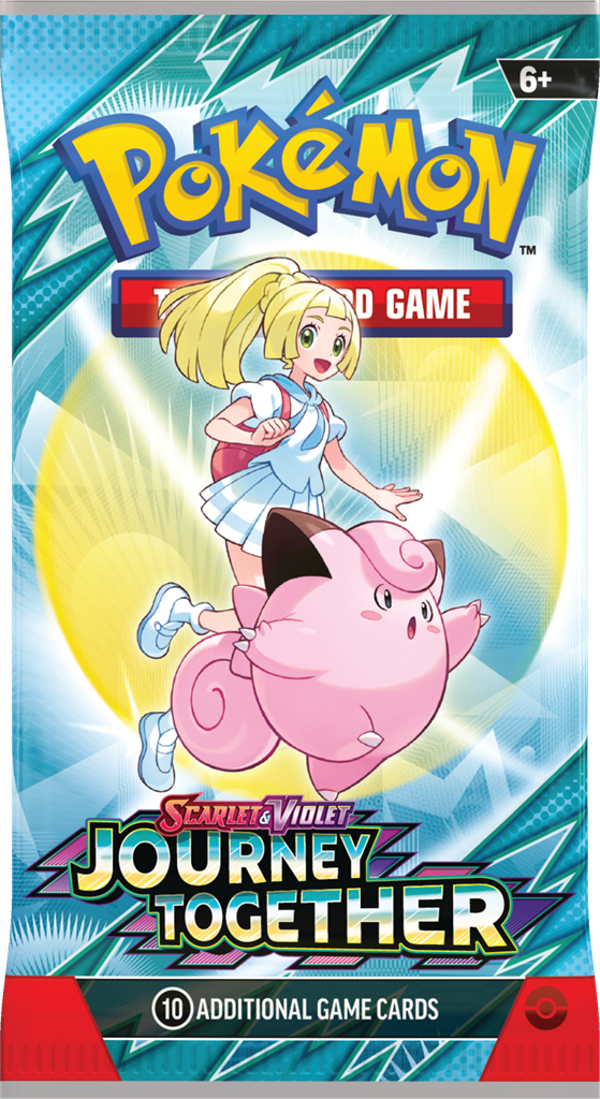 Met diep vertrouwen en constante begeleiding helpen Trainers het beste in hun Pokémon naar boven te halen. De band die ze delen, stelt hen in staat om als één geheel te handelen in de strijd, terwijl ze hun kracht tot het uiterste drijven, ook als Pokémon ex! Werk samen met N's Zoroark ex, Iono's Bellibolt ex, Lillie's Clefairy ex, Hop's Zacian ex en meer Trainer's Pokémon, en ontdek de onstuitbare kracht van vriendschap in de Pokémon TCG: Scarlet & Violet—Journey Together-uitbreiding! Breid je collectie uit met deze Booster Bundle met zes boosterpakketten van Pokémon TCG: Scarlet & Violet—Journey Together!