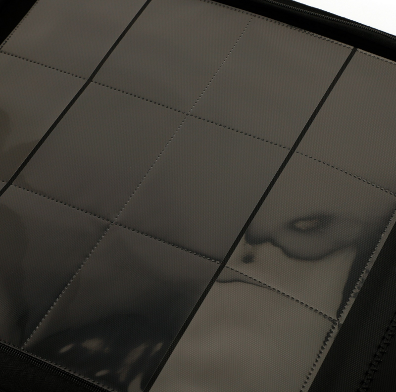 De buitenzijde is afgewerkt met spatwaterbestendig vegan leer en voorzien van een hoogwaardige ritssluiting, zodat je collectie altijd goed beschermd is – thuis of onderweg. De pockets zijn gemaakt van zuurvrij, kristalhelder materiaal, waardoor je kaarten in topconditie blijven en perfect zichtbaar zijn.