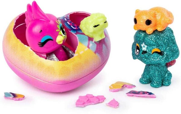 Het Hatchipets-pakket (2 stuks) wordt geleverd met één gekleurd hart en een extra Hatchimal met bijpassend huisdier waarmee je meteen kunt spelen.